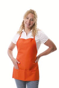 Bib Apron, Orange, 22 x 18, Loop Neck, Center Divided Pouch, 81545