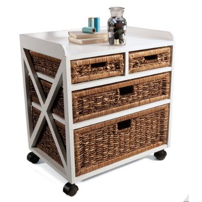 Removable woven banana leaf drawers Solid wood and veneer frame Sturdy smooth-rolling casters Our Mobile Organizer is one of those indispensable pieces that make every task seem easier All of your essentials stay beautifully disguised and effortlessly sorted within the drawers and the solid w