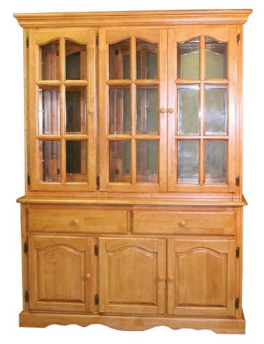 3 Door Buffet and Lighted HutchbySunset Trading Trusted 20 Years Experience Overall 555 in W x 18 in D x 75 in H Three raised panel doors with adjustable shelf Rich honey light oak finish Ships ready for easy assembly Intricate crown molding along the top Constructed of Asian hardwood and woo