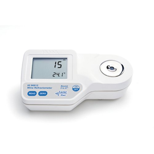 The HI 96812 is a portable water resistant digital wine refractometer that is based on the measurement of the refractive index of grapes and other samples and is suitable for field or lab use Samples are measured in units of Baume after a simple user calibration with deionized or distilled water